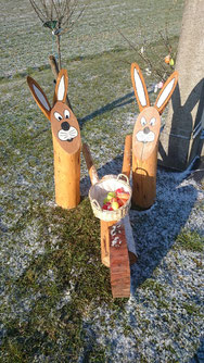 Unsere Osterhasen müssen heuer eine kalte Witterung überstehen. Regen, Schnee und Sonnenschein prägen momentan das Wetter.