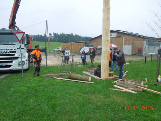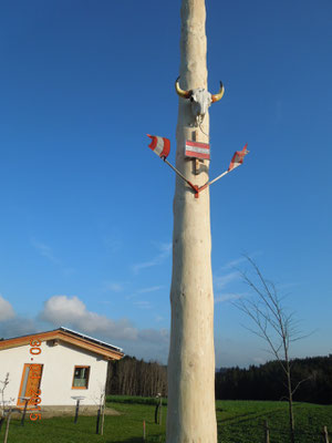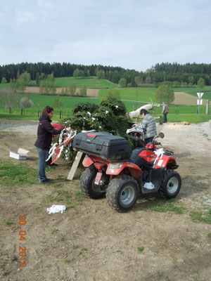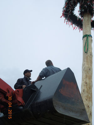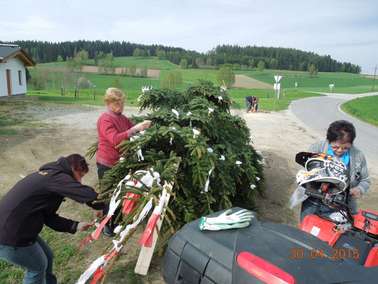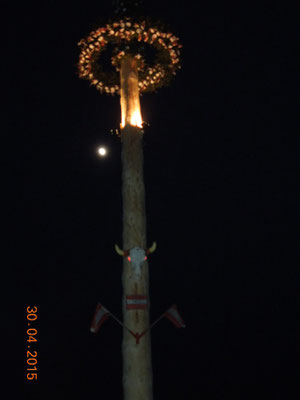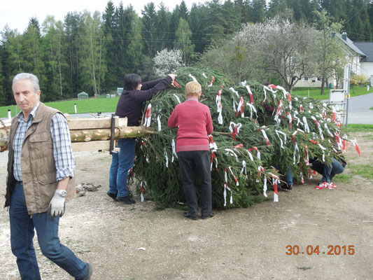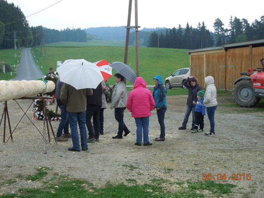 Das Maibaumfest wurde heuer schwer gefeiert. Viele fleißige Hände waren notwendig, um den 24 m langen Baum zu schmücken und aufzustellen. Bei der anschließenden Geburtstagsfeier mit Freunden und Bekannten wurden einige lustige Gedichte, Geschenke und Glückwünsche überbracht.