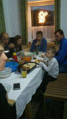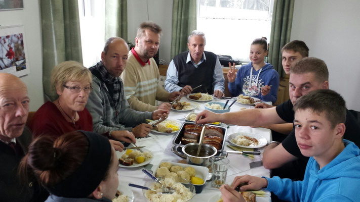 Frühschoppen (und länger) im Stiahaus mit Mittagessen, Kaffee und Kuchen mit Freunden und fleißigen Helfern