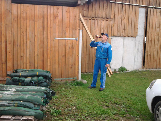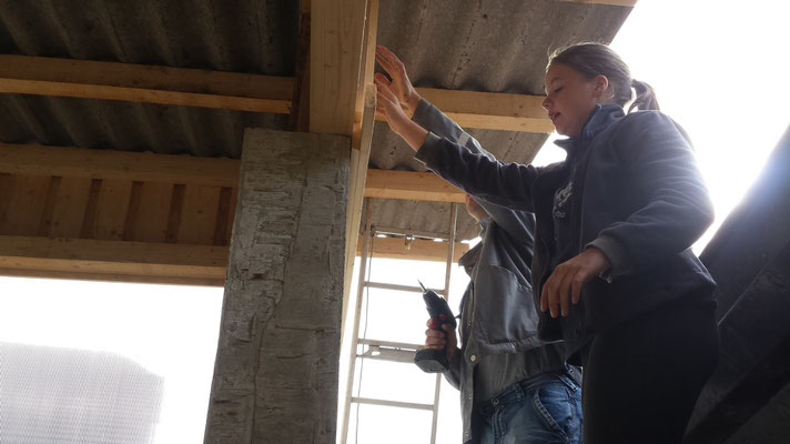 1/2015 Nach den Weihnachtsferien haben wir sofort wieder mit der Arbeit begonnen. Wir montierten eine Dachbodentreppe im Stiahaus, sortierten alle Mappen der notwendigen Aufzeichnungen und isolierten im Stall die Decke.