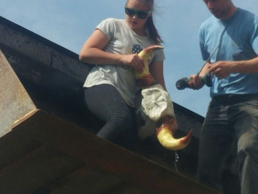 Unser Logo, der wilde Stier, darf natürlich nicht fehlen, und wurde gemeinsam mit unserer Adresse auf allen Seiten aufgeklebt.
