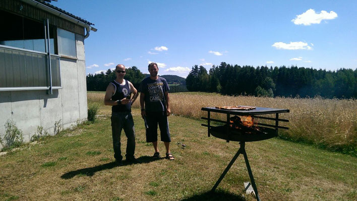 Franz versorgt uns mit Schnitzeln, ein langer Frühschoppen !