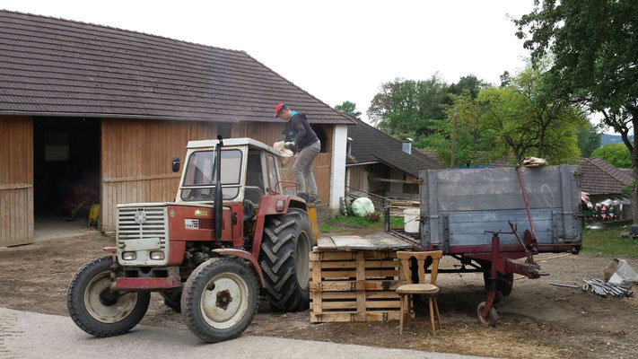 bearbeiten sind, kultivieren wir sie mit schwerem Gerät. Das ist die Lieblingsbeschäftigung vom Mader-Opa.