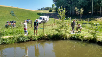 Wie jedes Jahr im Frühjahr werde diverse landwirtschaftliche Flächen wieder instandgesetzt. Heuer wird die Teichanlage in Angriff genommen. Ein neuer Einlauf sollte künftig für einen reinen Wasserzulauf zu den Fischteichen sorgen. Zusätzlich sollte eine Drainage genügend Wasser auch in der Trockenzeit bringen.